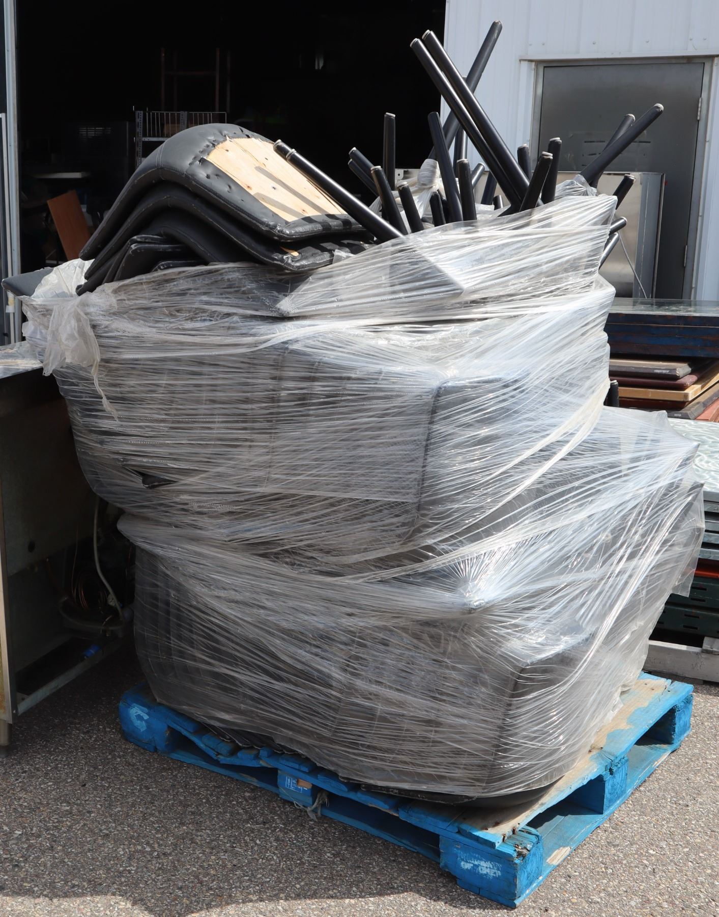 SEAT HEIGHT 19". ALL HAVE HAD BASES REMOVED. CHAIRS DID NOT STACK