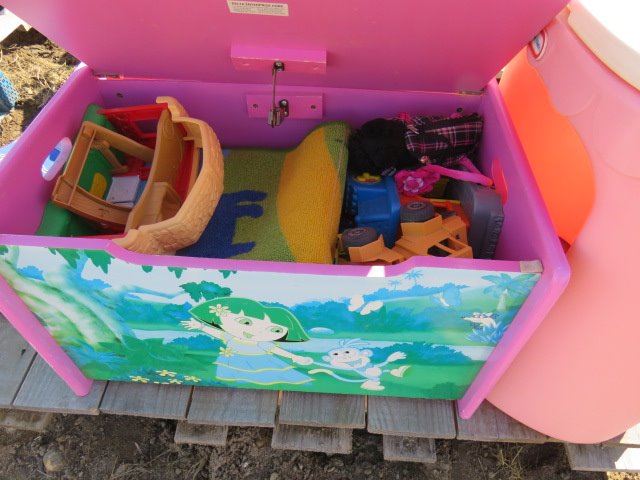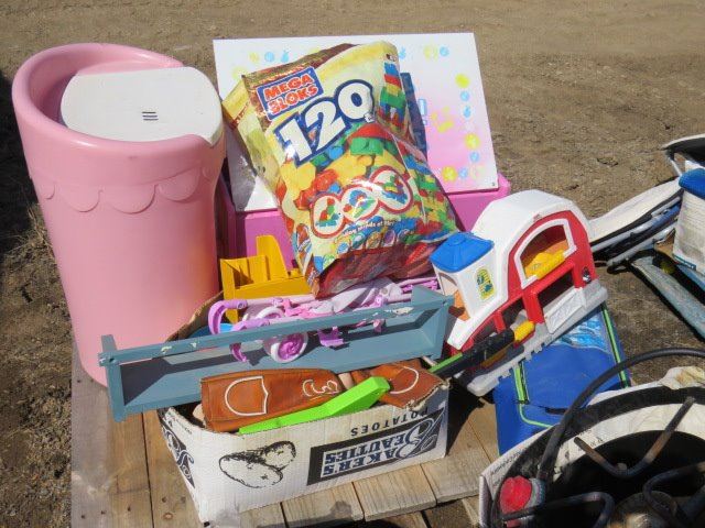 PALLET OF MISC CHILDREN'S TOYS (BUILDING BLOCKS, TOY BOX, ETC)