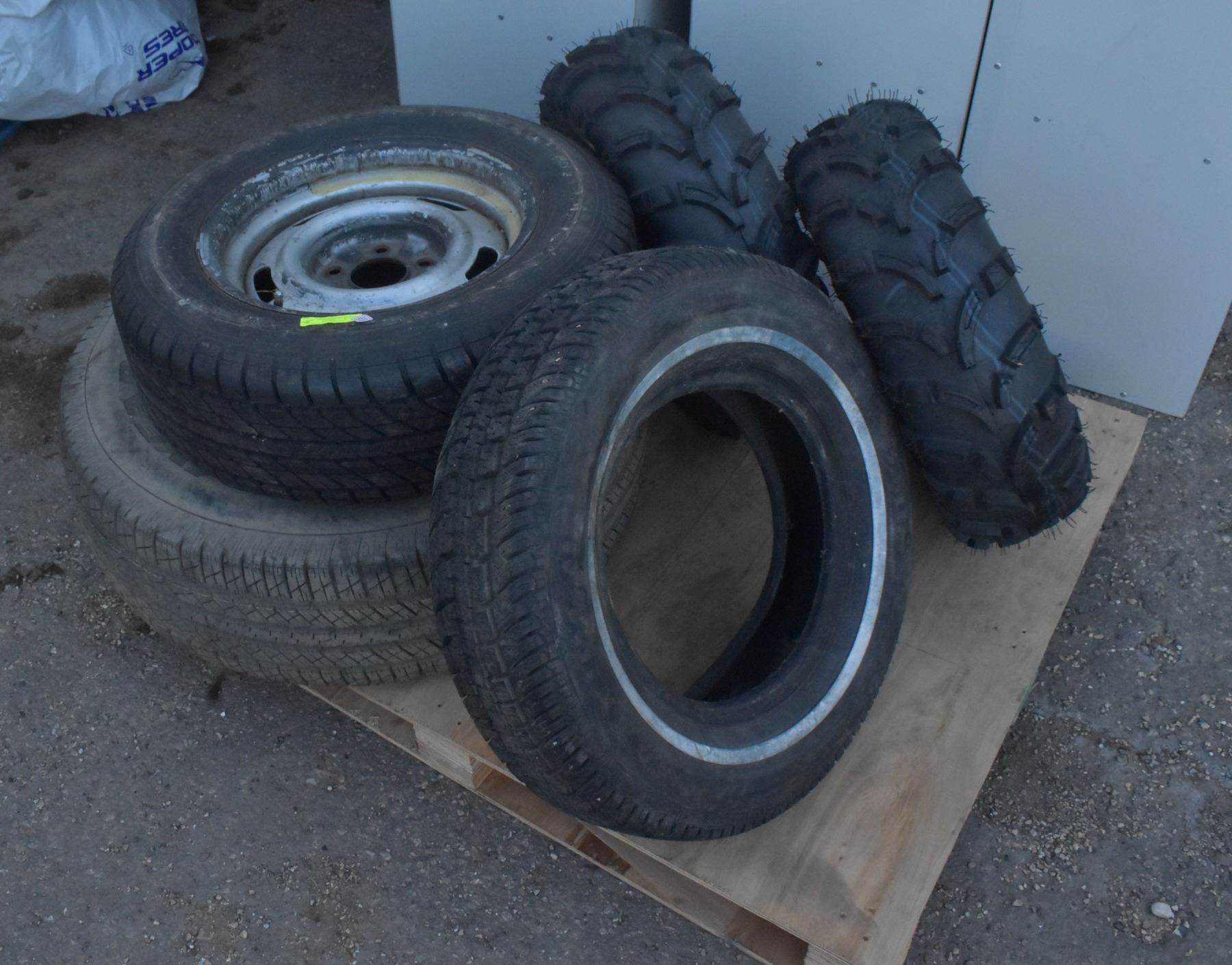 PALLET OF MIXED TIRES - SIZES AND TYPES - RIMS, NO
