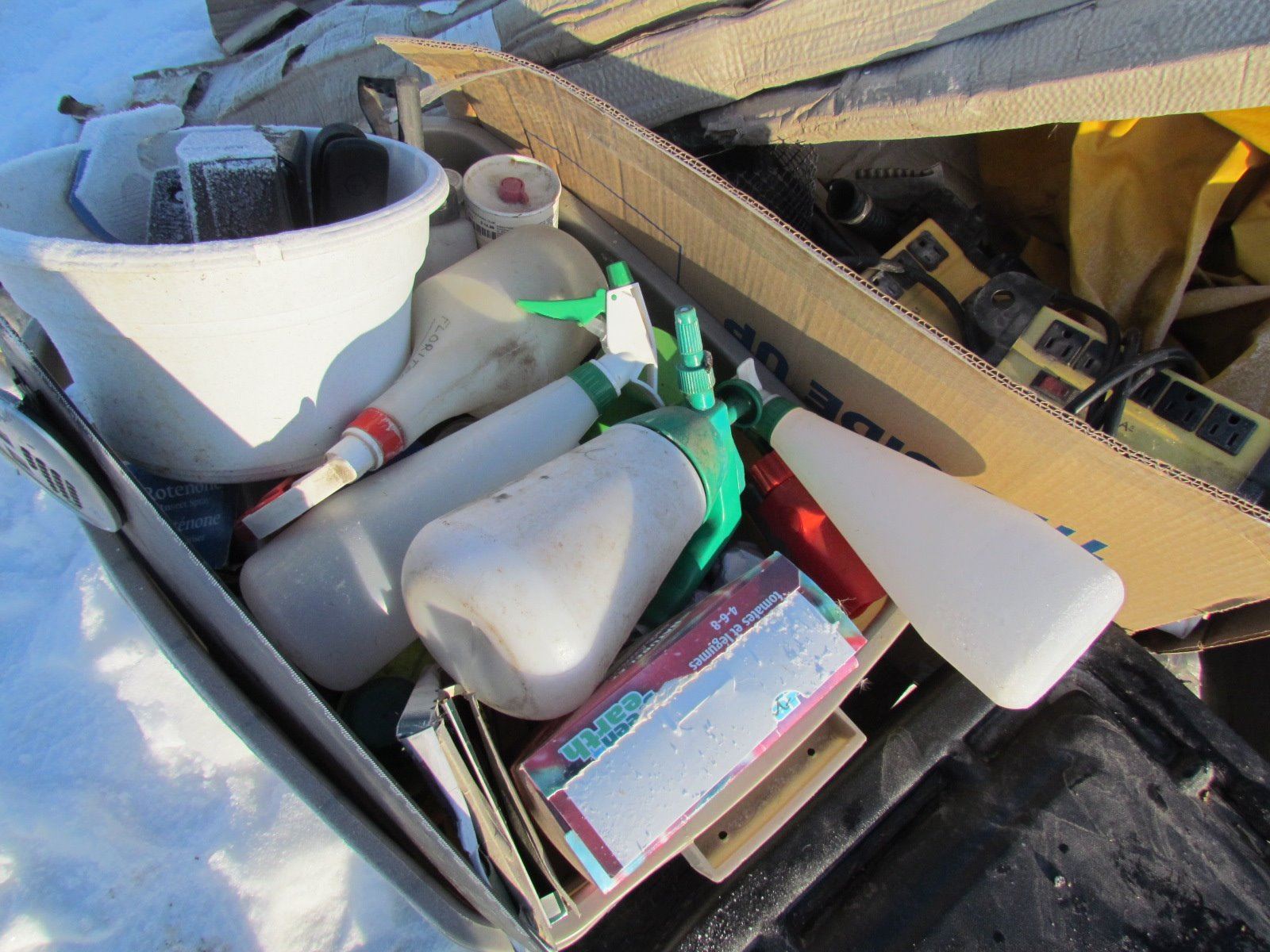 PALLET OF TUBS, SPRAY BOTTLES, ELECTRICAL BOXES, HOSES, ETC