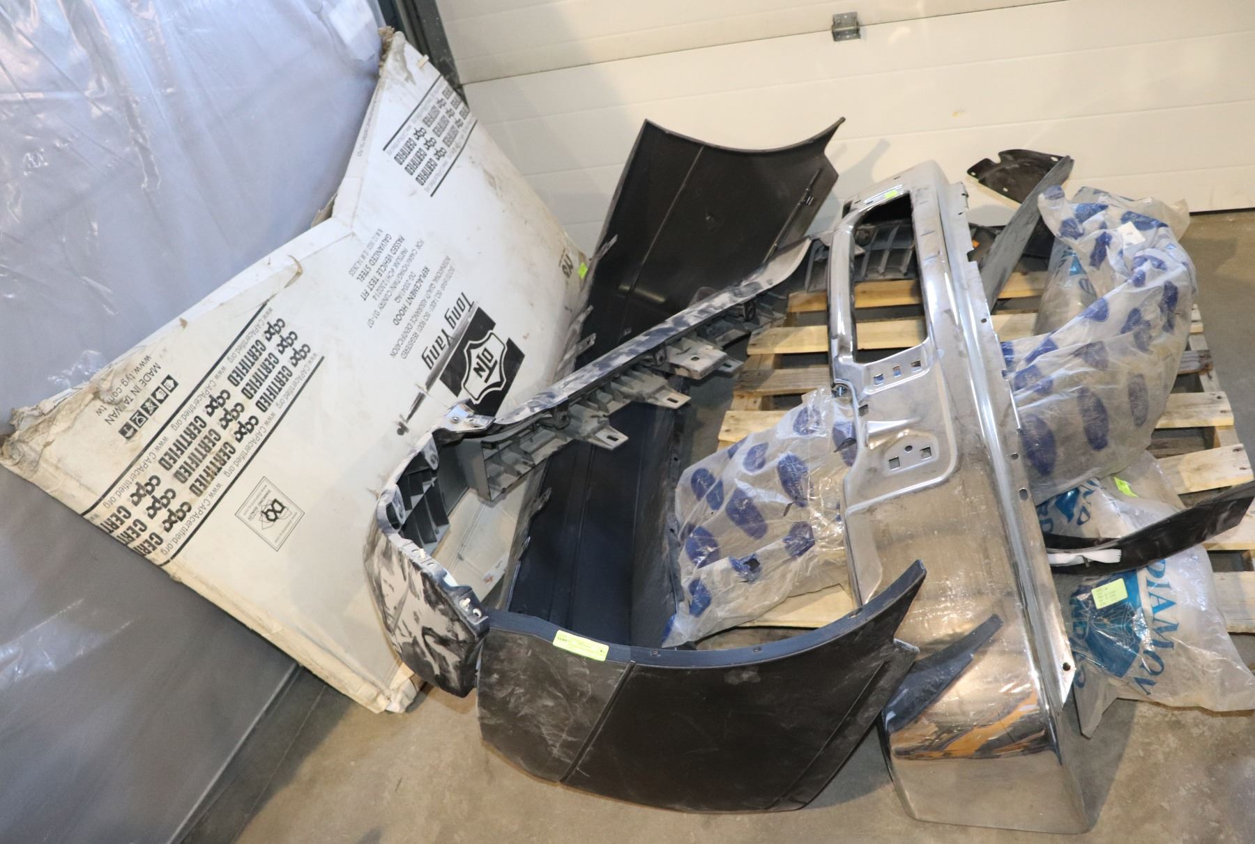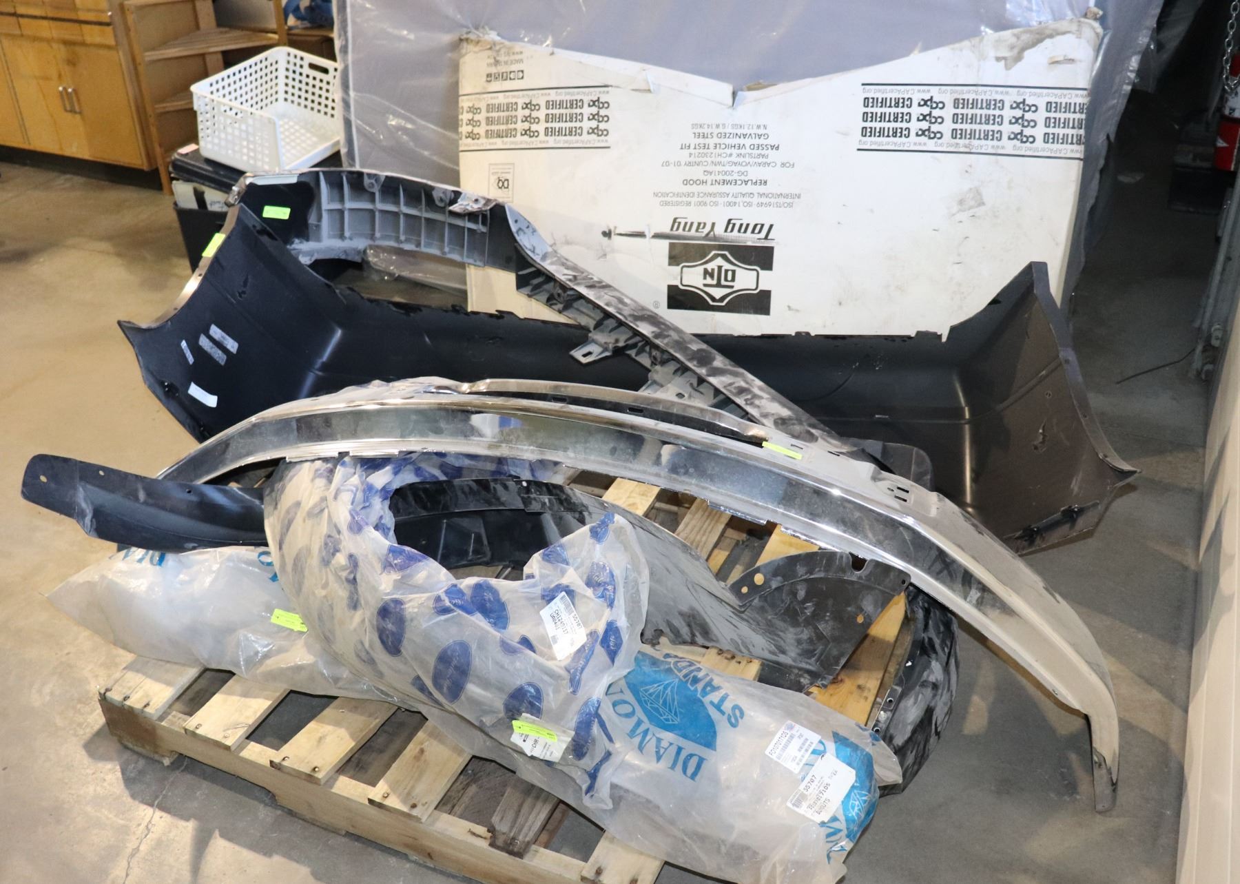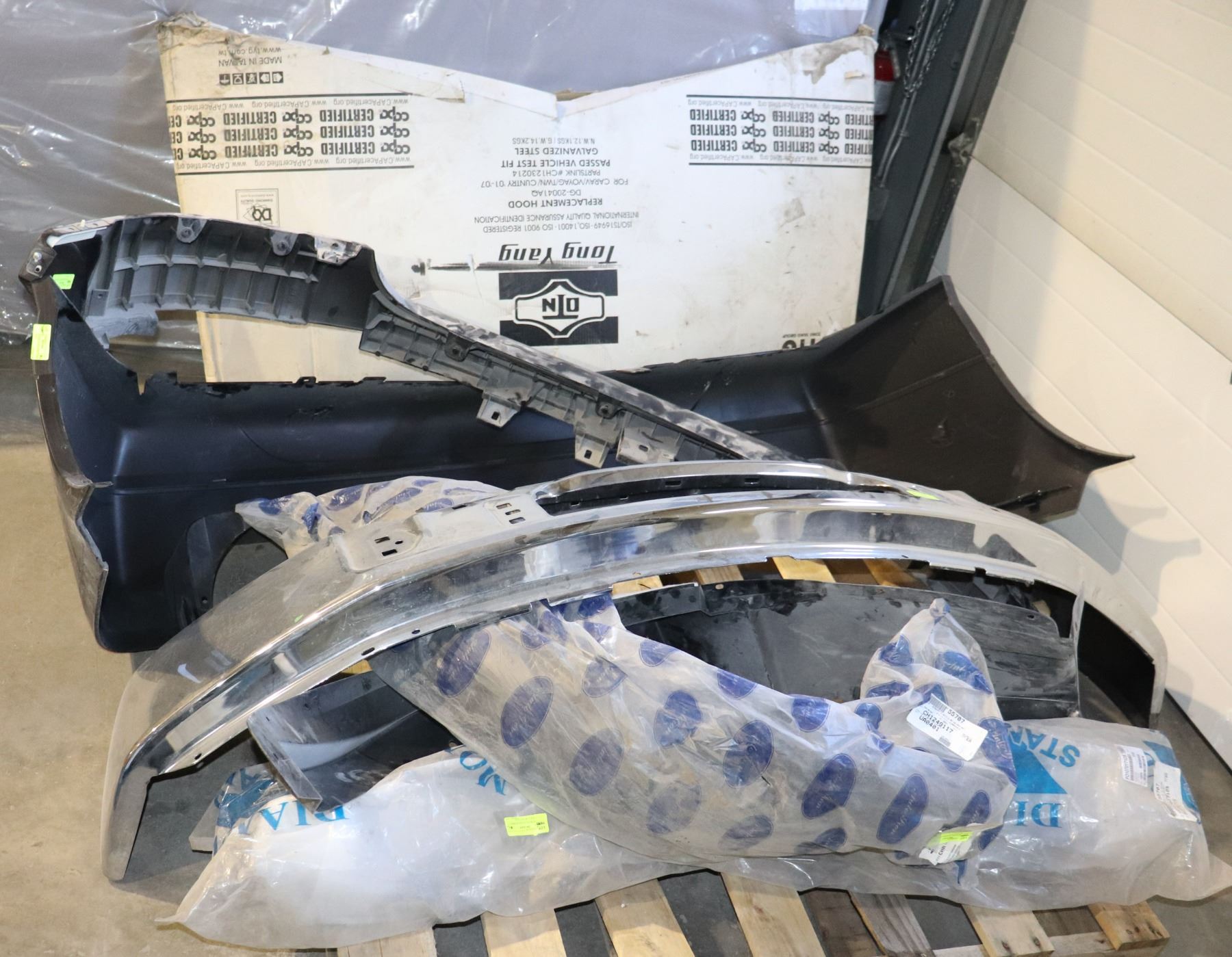 BUMPERS, A MINIVAN HOOD, FENDER LINERS, ASSORTED VEHICLES. BIDDER MUST TAKE ALL.
