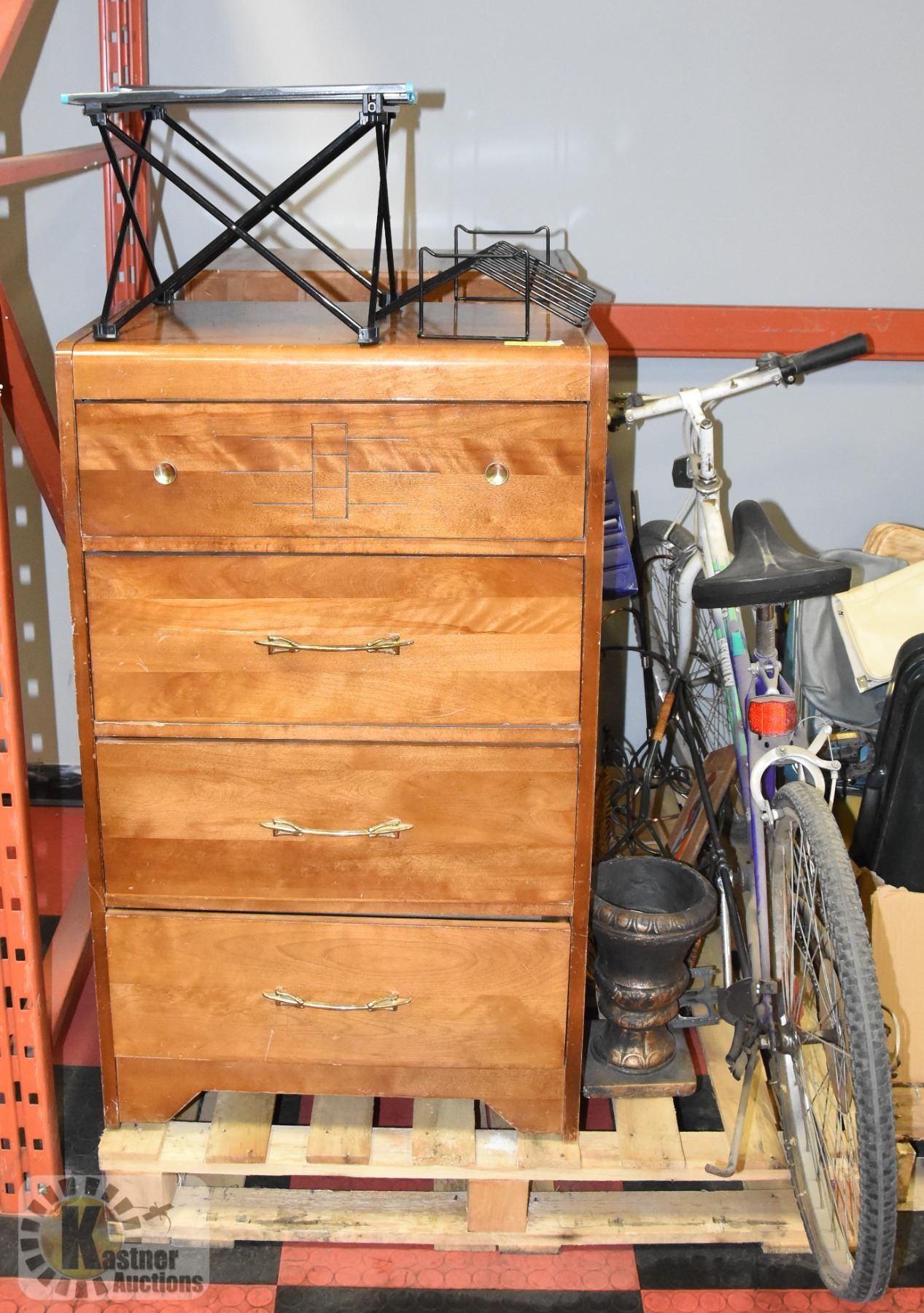 PALLET OF WOOD FURNITURE + OTHER ESTATE ITEMS