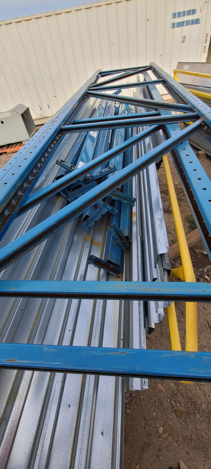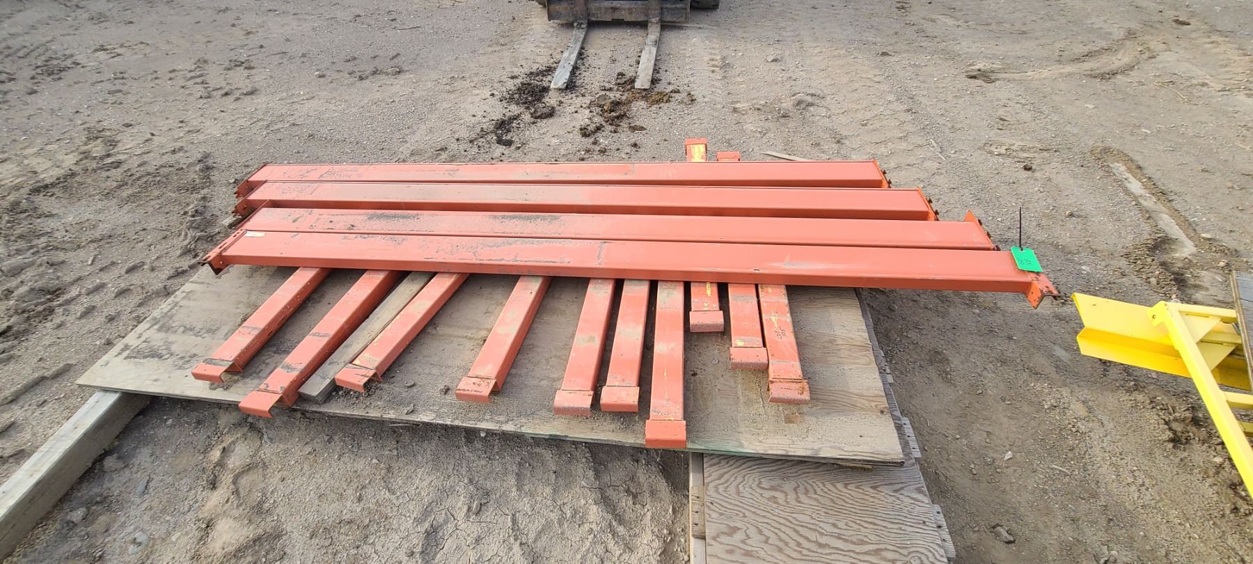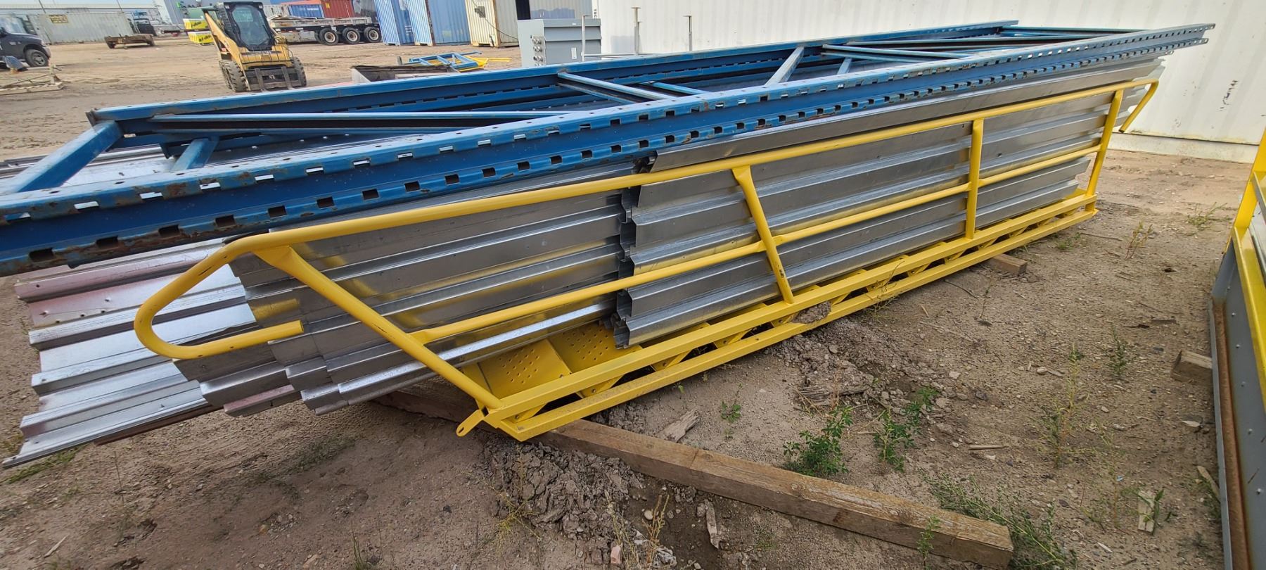 PALLET RACKING MEZZANINE FLOOR C/W 2-3FT STAIRS 2-16 FT UPRIGHTS, APPROX 18 36" X 18FT DECKING, 24 4 1/2| 10FT BEAM. 4-6" BEAM, 10 CROSS BRACES