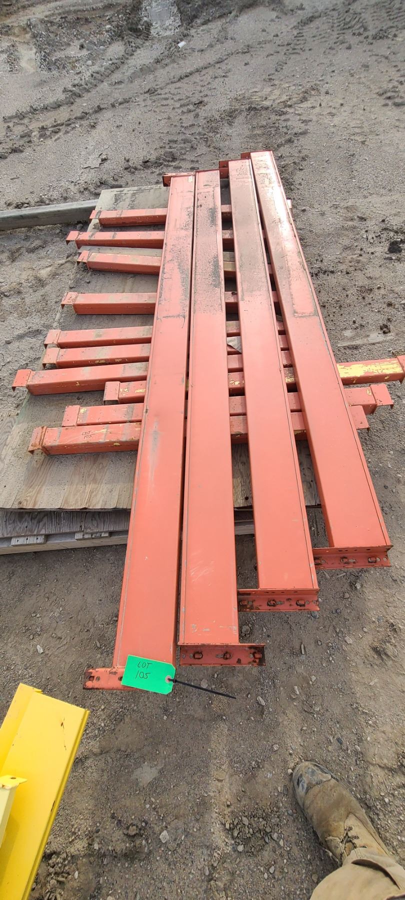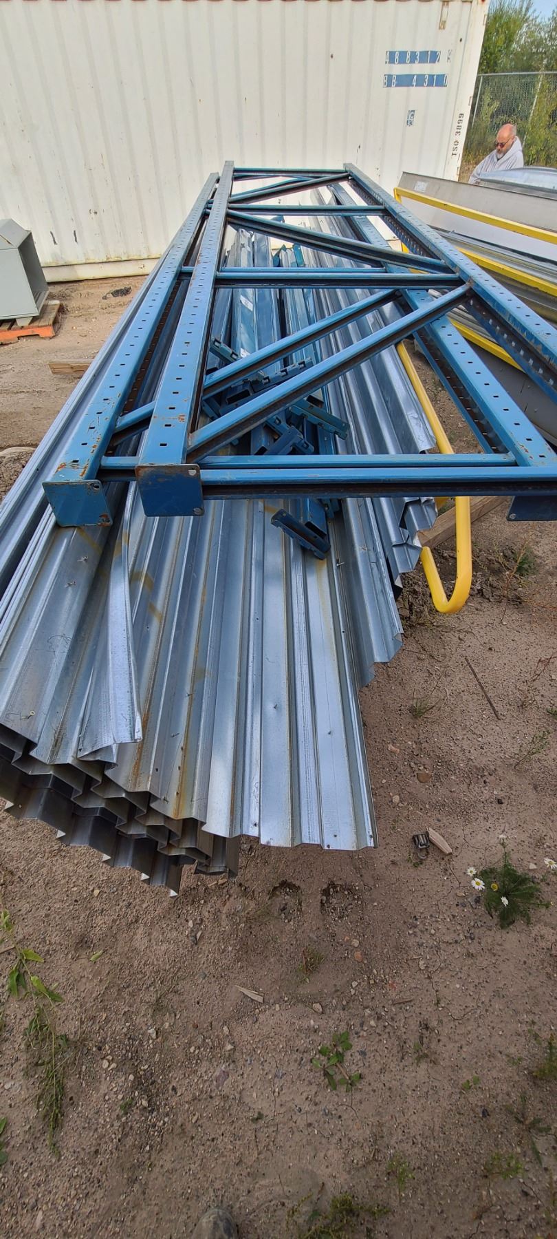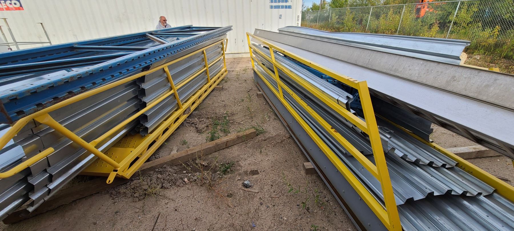 PALLET RACKING MEZZANINE FLOOR C/W 2-3FT STAIRS 2-16 FT UPRIGHTS, APPROX 18 36" X 18FT DECKING, 24 4 1/2| 10FT BEAM. 4-6" BEAM, 10 CROSS BRACES