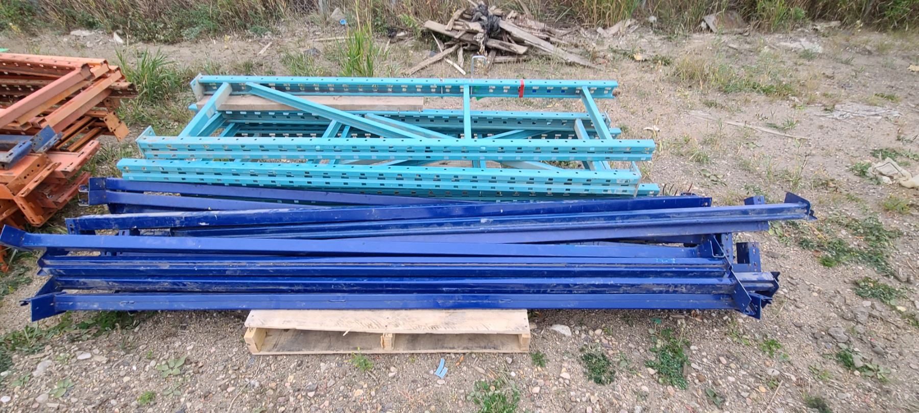 4-8.5FT SECTIONS CW 5 UPRIGHTS, 16 X 2"BEAMS AND 8 SHELVES OF PLYWOOD 8.5L X 7FT H X 24"WIDE