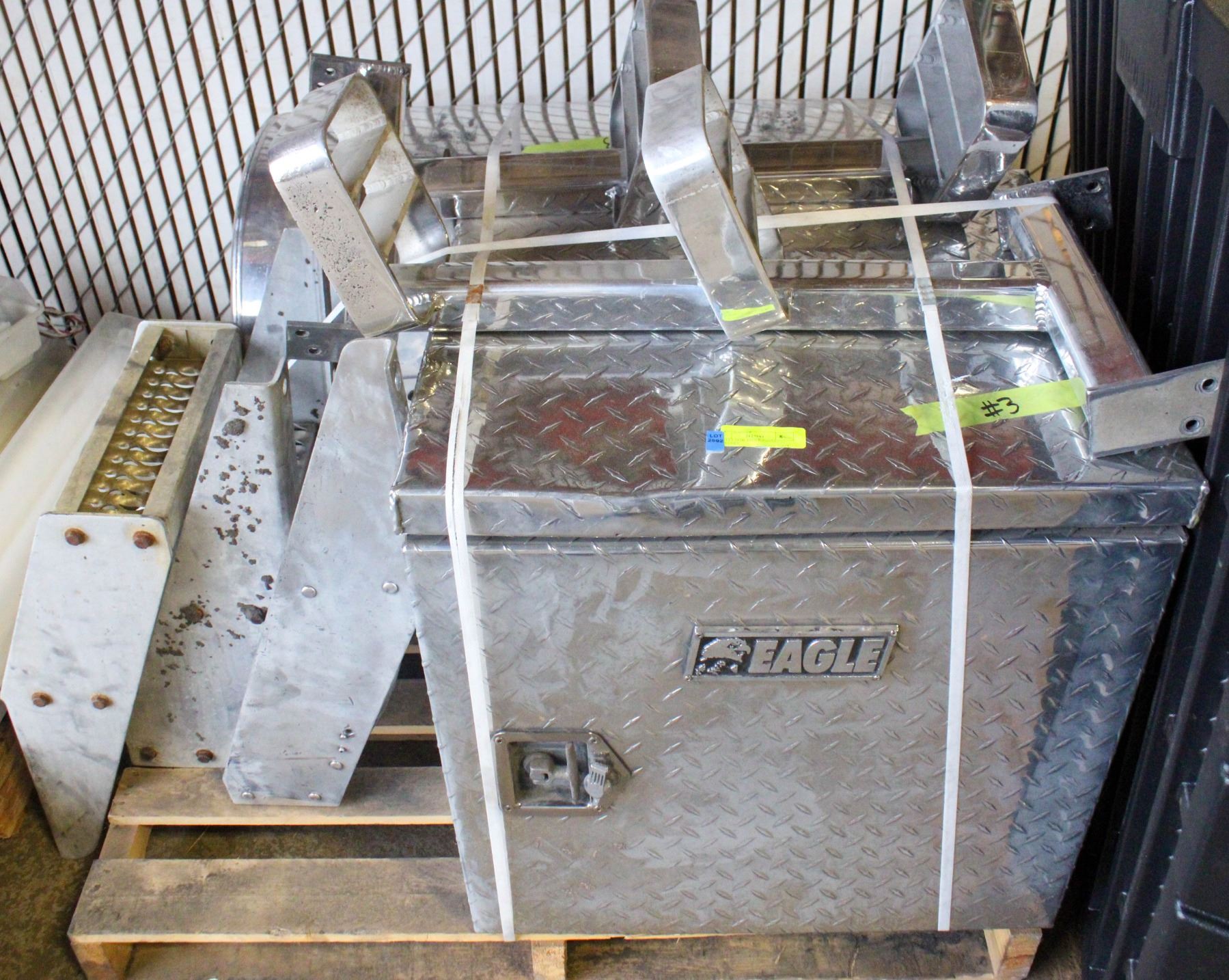 ALUMINUM FUEL TANK, 2 STEPS & TOOL BOX. **MUST BE REMOVED BY TUESEDAY @ 5PM** **ALL ITEMS MUST BE REMOVED BY 5PM SATURDAY, NOVEMBER 15TH 2025. ALL REMAINING ITEMS WILL BE SUBJECT TO A $6.00 PER DAY STORAGE CHARGE. ANY ITEMS REMAINING AFTER MONDAY, DECEMBER 1ST 2025 WILL BE CONSIDERED FORFEITED. NO REFUNDS WILL BE ISSUED FOR FORFEITED ITEMS. TO SCHEDULE A PICK UP APPOINTMENT CLICK HERE
