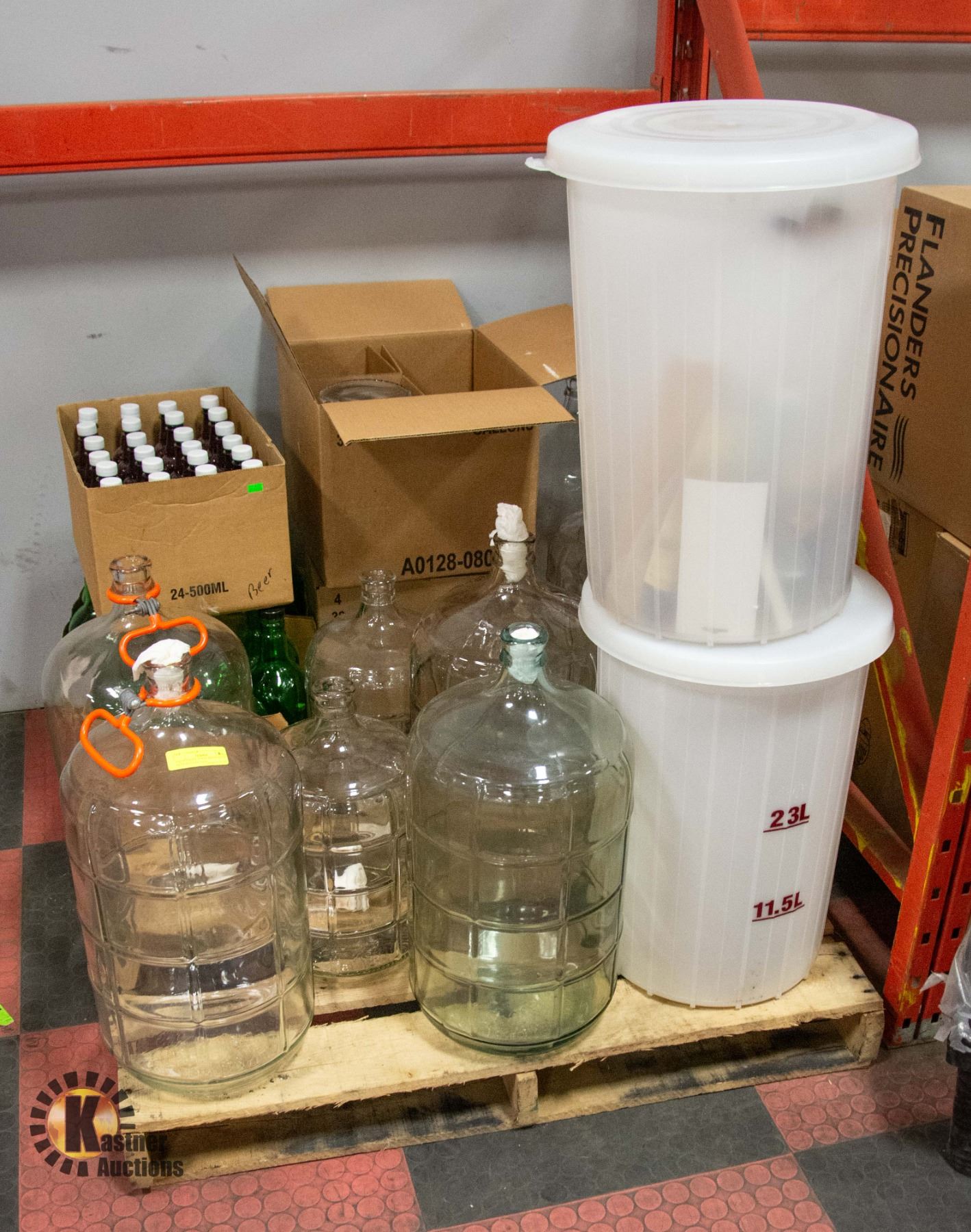 CARBOUYS, 3 SMALL CARBOYS, 2 FERMENTERS WITH CARBOUYS, 6 X 1 GALLON BOTTLES ALL TOGETHER *PALLET MUST BE REMOVED BY WEDNESDAY AT 5PM* **ALL ITEMS MUST BE REMOVED BY 5PM SATURDAY, JULY 13TH 2024. ALL REMAINING ITEMS WILL BE SUBJECT TO A $6.00 PER DAY STORAGE CHARGE. ANY ITEMS REMAINING AFTER MONDAY, JULY 29TH 2024 WILL BE CONSIDERED FORFEITED. NO REFUNDS WILL BE ISSUED FOR FORFEITED ITEMS. TO SCHEDULE A PICK UP APPOINTMENT CLICK HERE