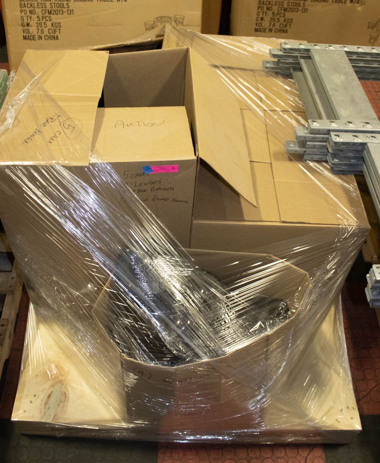 PALLET WITH 8 SPEAKERS, 5 POE CAMERAS,
