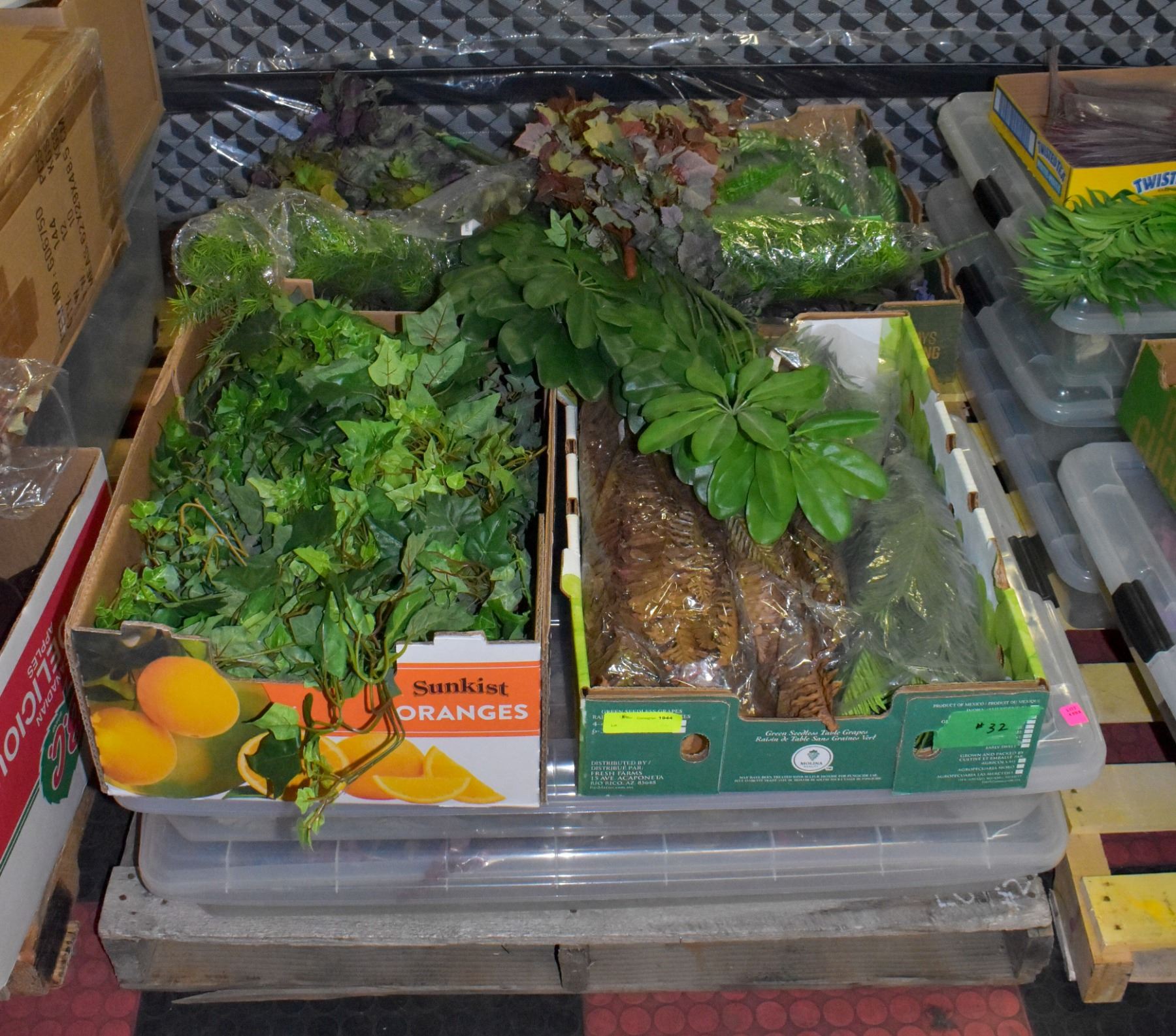 PALLET WITH ARTIFICIAL FLOWERS AND PLANTS