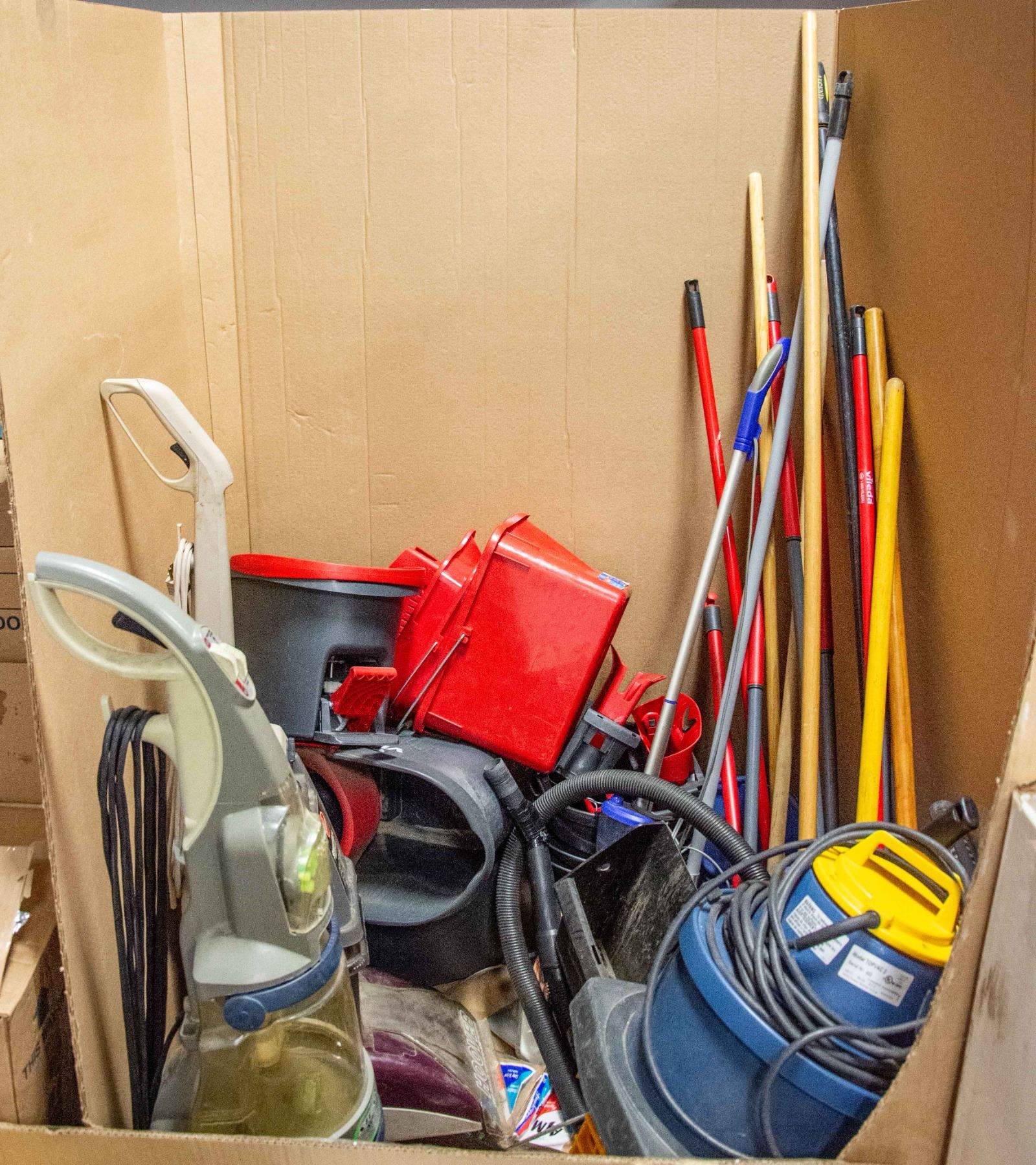 PALLET WITH LARGE LOT OF FLOOR CLEANING ITEMS