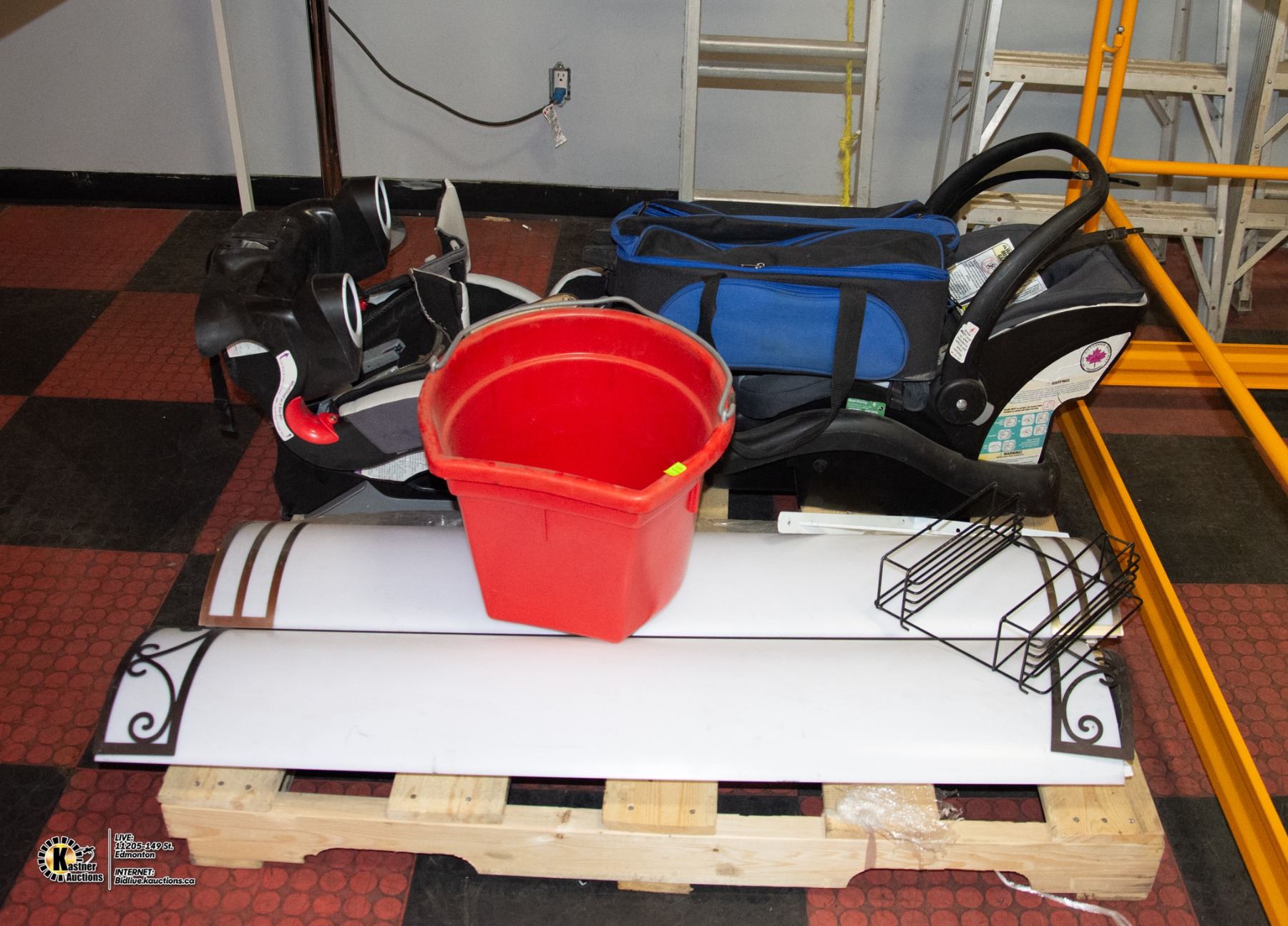 PALLET WITH LIGHTING, BUCKET AND MORE