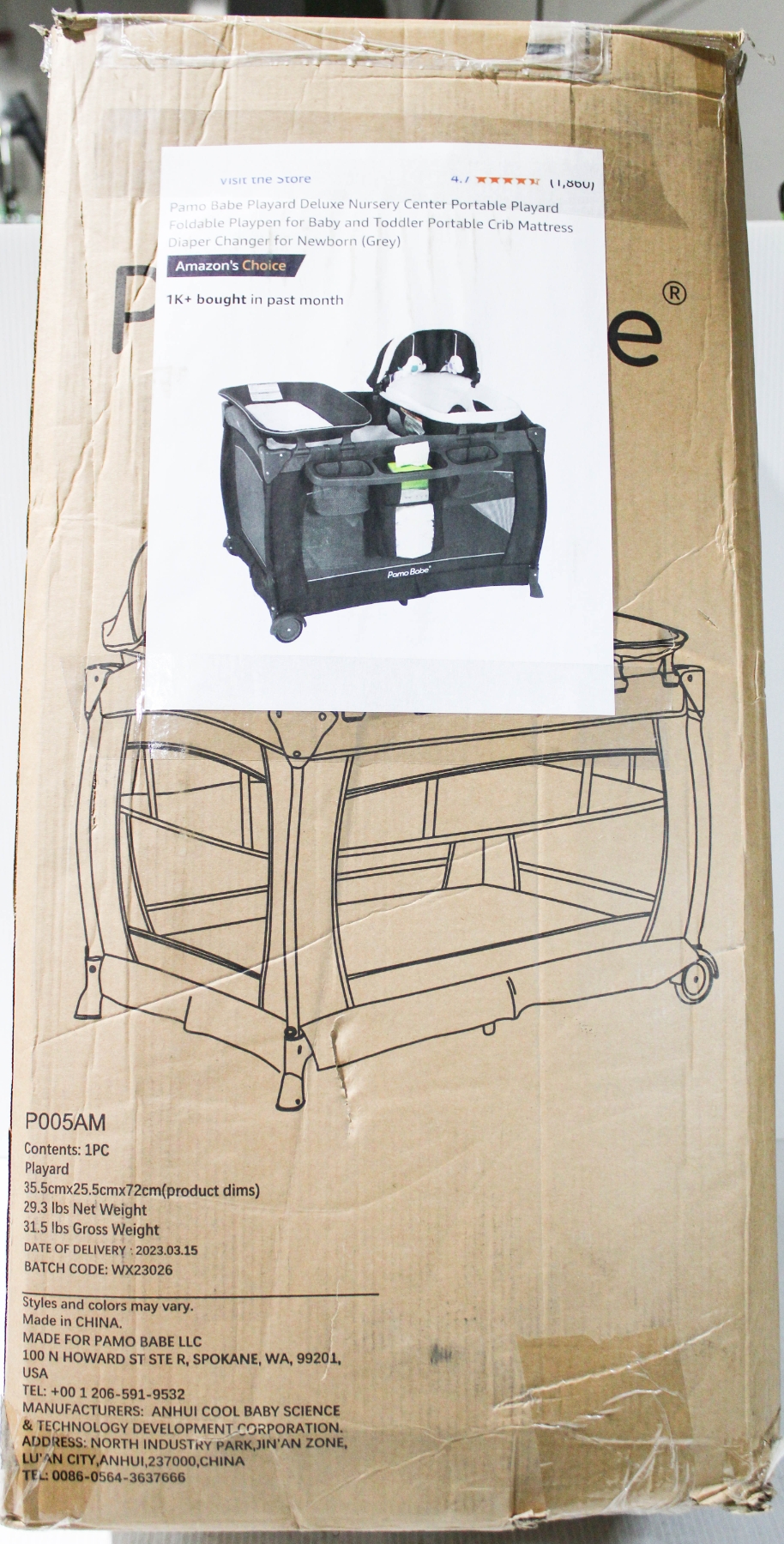 35.5CM X 25.5CM X 72CM - COLOR: GREY - REPACKAGED **PLAYPEN & MATTRESS ONLY****NO SHIPPING**
