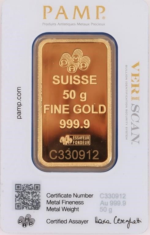 PAMP Suisse Fortuna 50 Gram fine gold 999.9% bar.