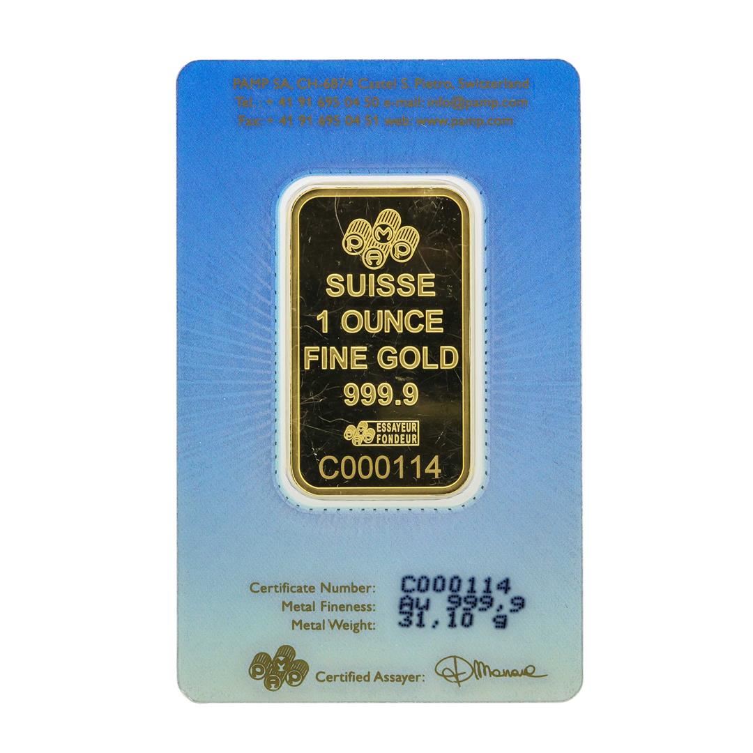 One PAMP Suisse 1 oz .9999 Fine Gold Ingot.