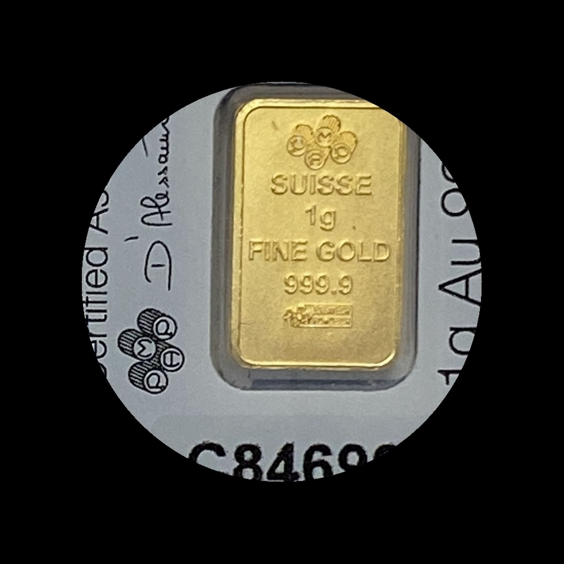 PAMP Suisse 1g Gold Bar .9999 Fine in Assay Card HIGH GRADE