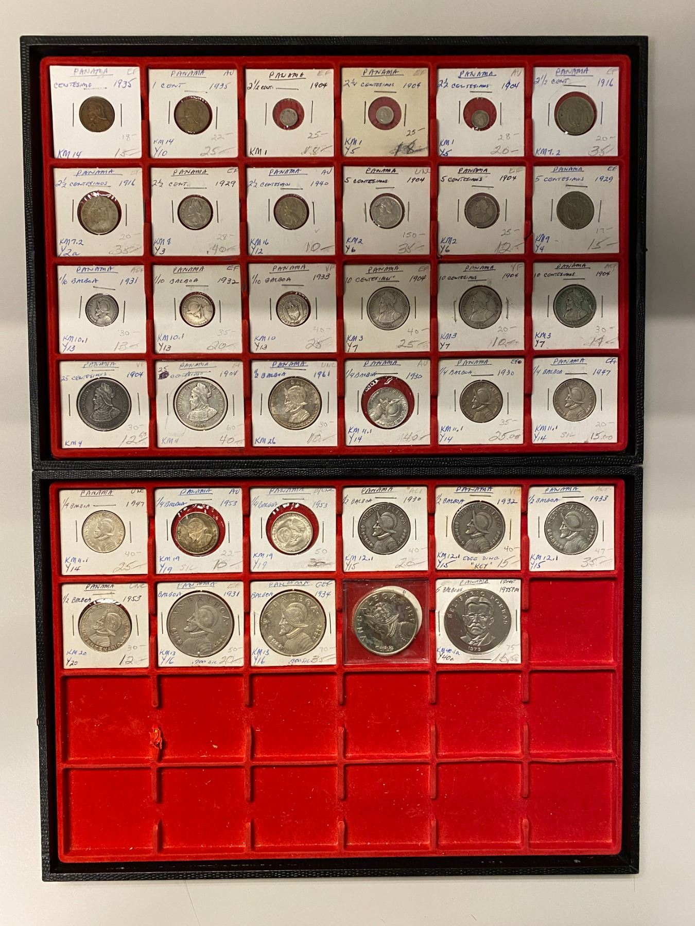 PANAMA: LOT of 35 coins, including 28 silver, 3 of which are crowns and 10 are dated 1904, a nice mix of older types; retail value $750, lot of 35 pieces.