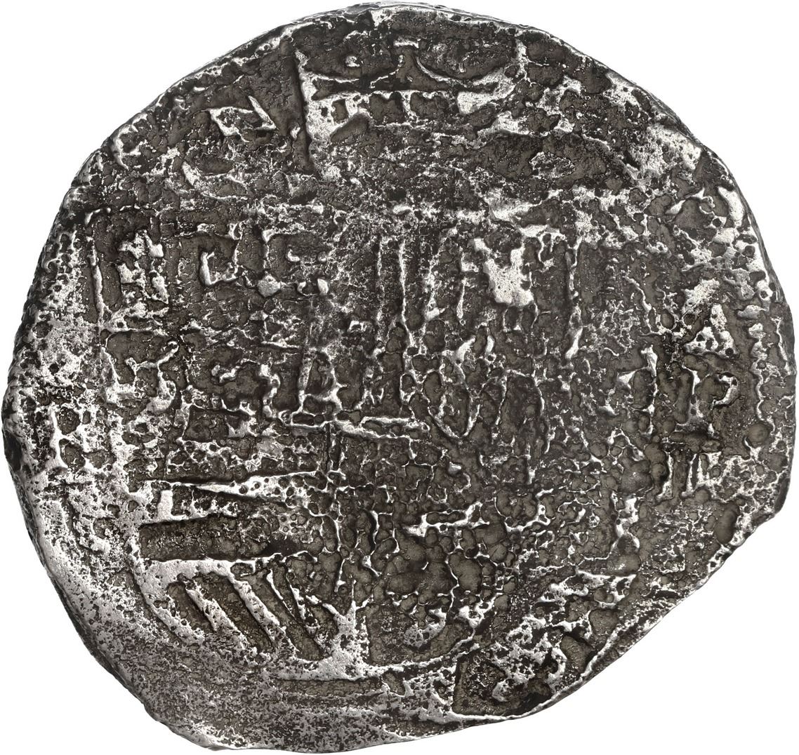 PANAMA, Panama City, cob 4 reales, Philip II, assayer oB to left, mintmark AP above denomination IIII to right, very rare, ex-Santiago (1585). S-AP4; KM-4; Cal-517. 11.40 grams. Solid coin despite heavy surface corrosion, nicely toned, with oB to left and mintmark AP to right barely visible, the latter with denomination in Roman numerals below (either IIII or the known error III), most of crown and some legend, the full cross and shield also somewhat doubled, XF details overall. From the Santiago (1585), pedigreed to the Steve Valentine Collection, with original certificate from the salvor/conservator.