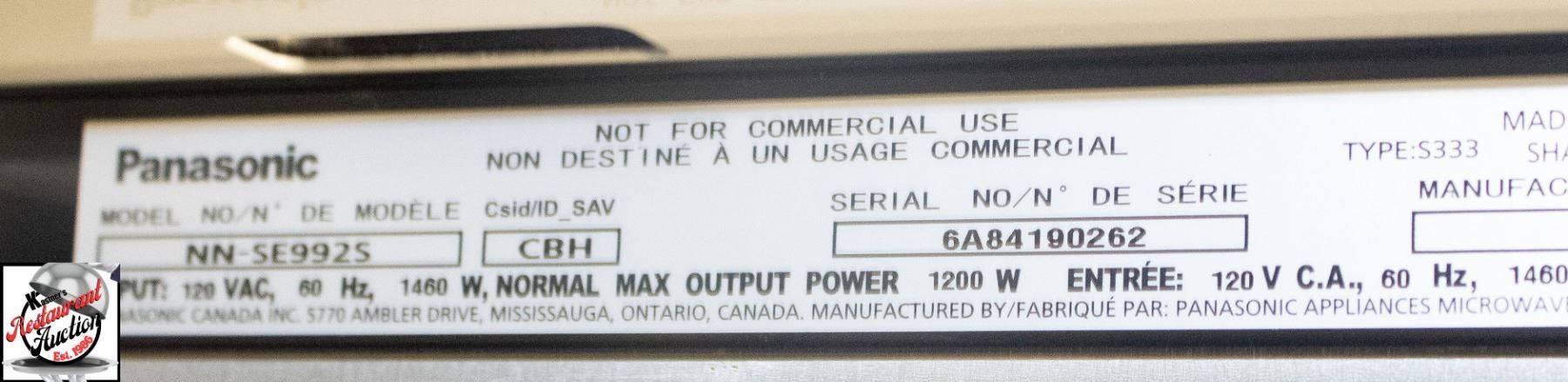 MODEL # NN-SE992S, 120 VAC, 60 HZ, 1460 WATTS, NORMAL MAX OUTPUT 1200 WATTS, D.O.M. 08 / 2014, 24" X 18" X 13"
