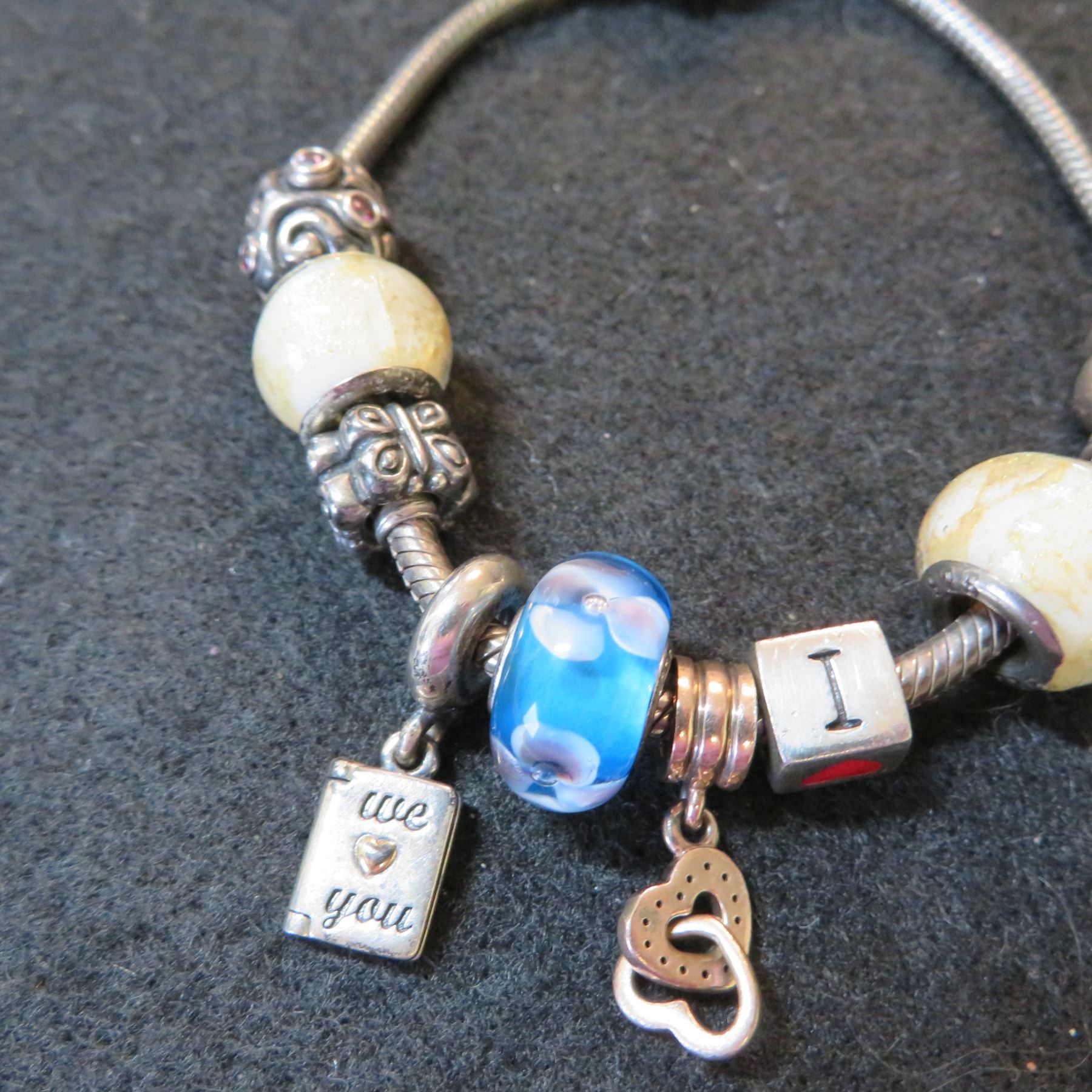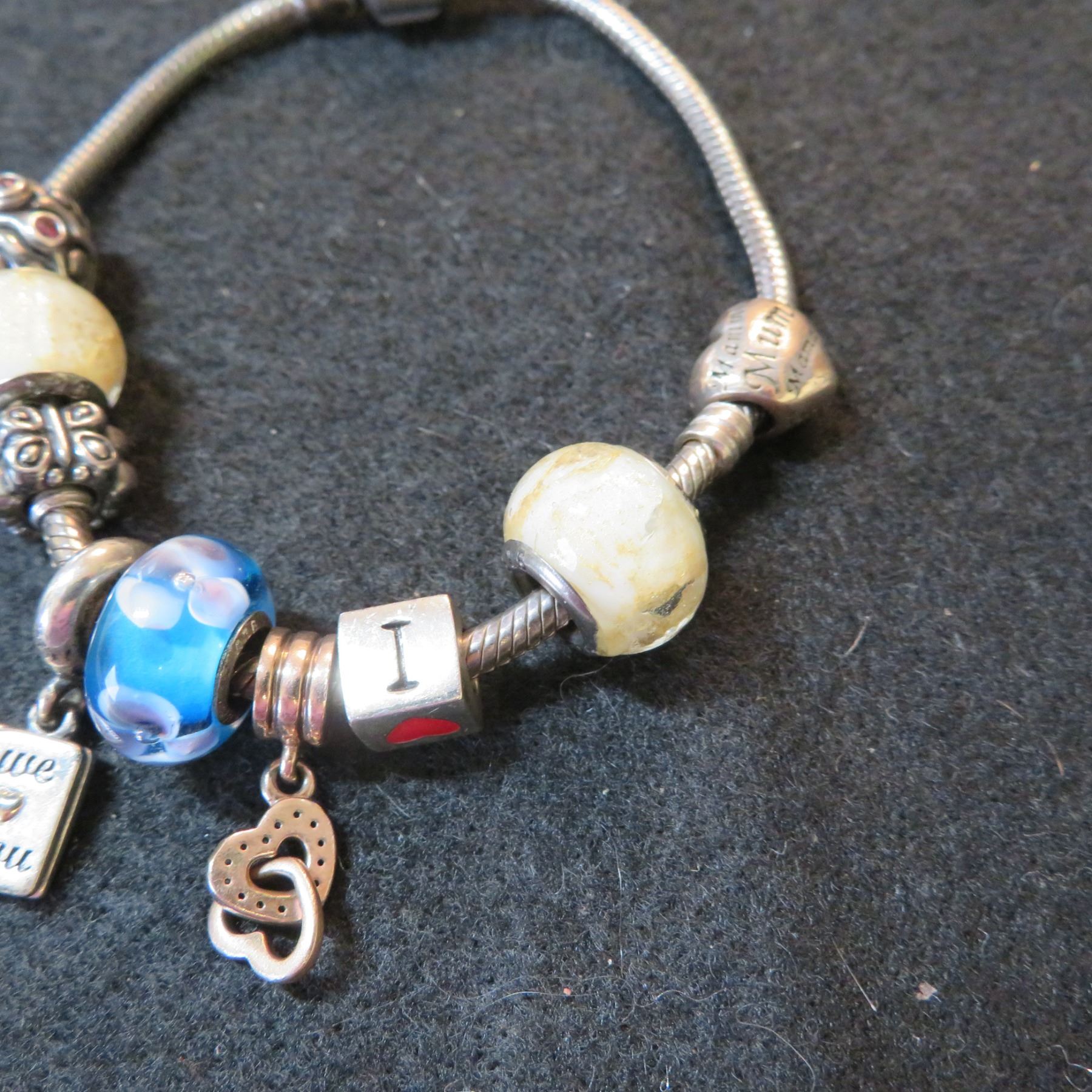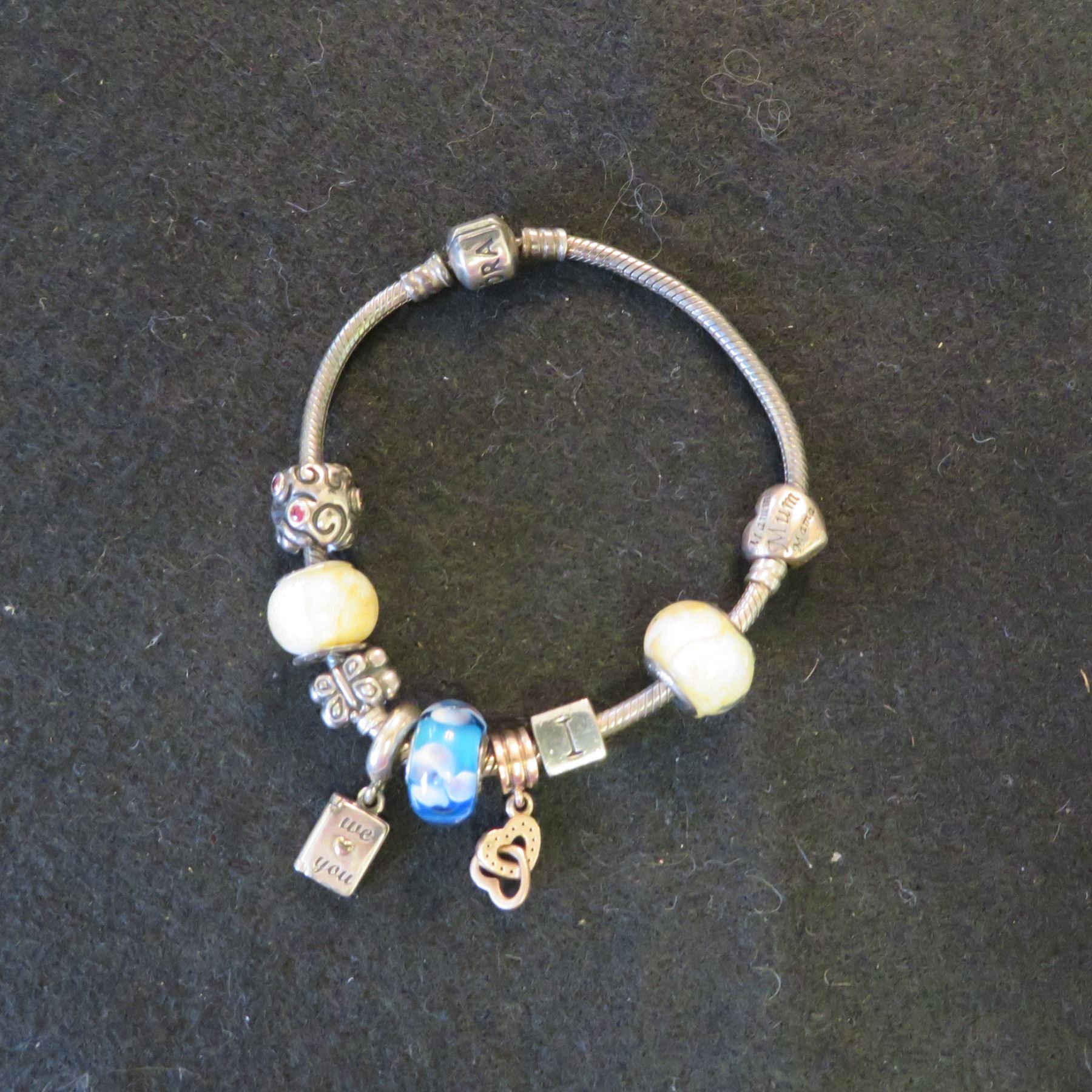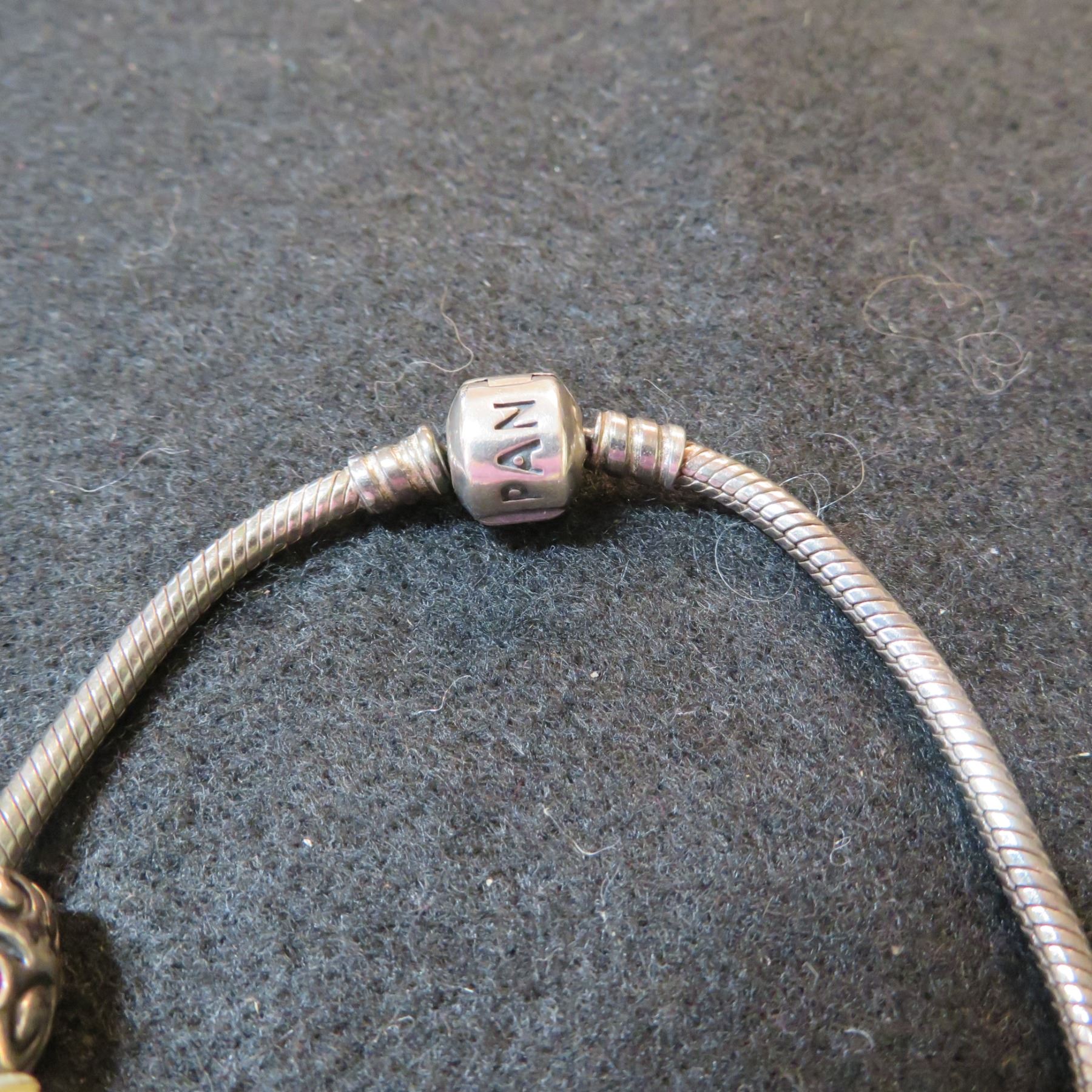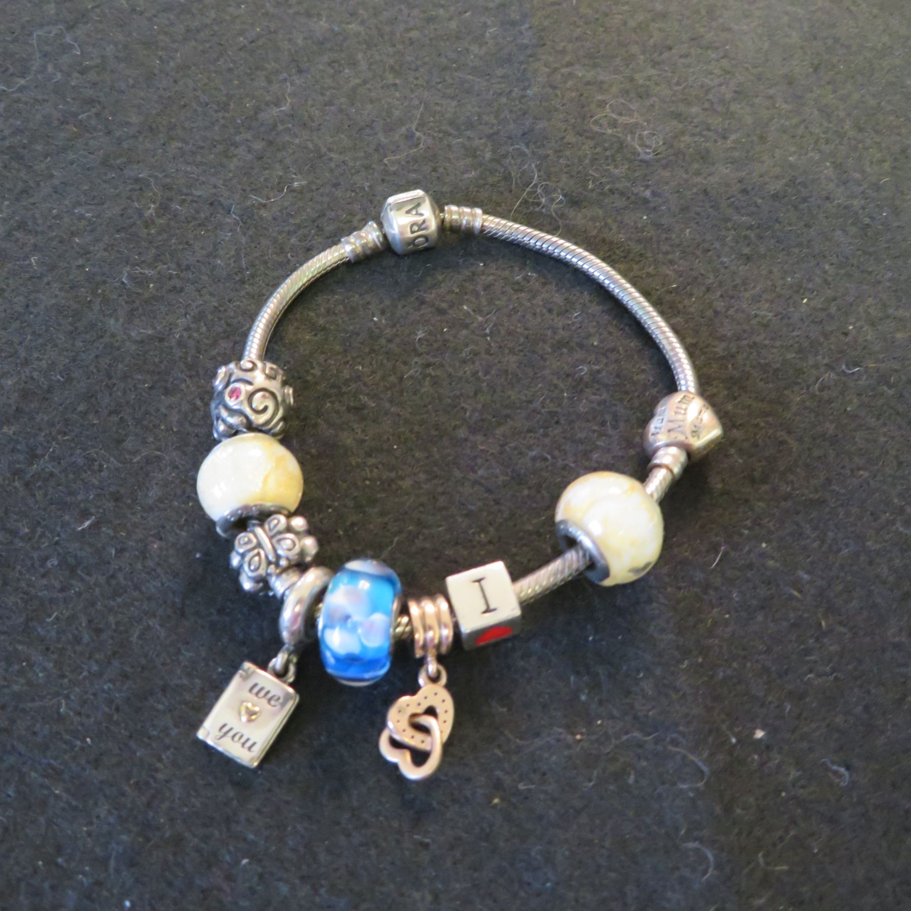 PANDORA bracelet (925 Silver) with a combination of authentic Pandora & other 925 charms. 8 charms in total.