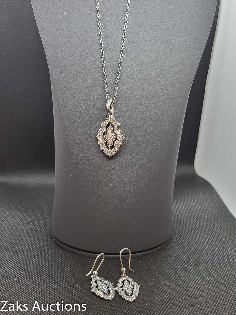 PANDORA NECKLACE WITH MATCHING EARRINGS. STAMPED S 925 ALE