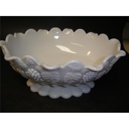 PANELED GRAPE,PATTERN #1881, WESTMORELAND GLASS COMPANY,1950. THIS BOWL IS THE OVAL LPD. 11 INCHS.