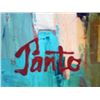 Artist: Nelly Panto - Title: Enjoying the Music - Medium: Original Acrylic on Canvas - Signature: Hand-signed by the Artist - Image Size: Approximately 30 inches x 30 inches - Unframed on Unstretched Canvas - Details: This work comes with a Certificate of Authenticity - Biography: The contemporary art of Nelly Panto uses new achievements in the technology of art. In her recent paintings she combines different aspects of nightlife in the modern mega-city of our times. Flickering lights, deep shadows and rectilinear shapes are the vocabulary of her work. Panto uses sharp contrasts with density of color, to depict her modern heroes. Nelly Panto was born and raised in Kishenev, Moldova, where she graduated Art School and the local 'Art Academy'. She then worked as a book illustrator and designer. She illustrated the books of classical authors as Dostoevsky, Chekhov and Kuprin, deepening her understanding of human psychology. -