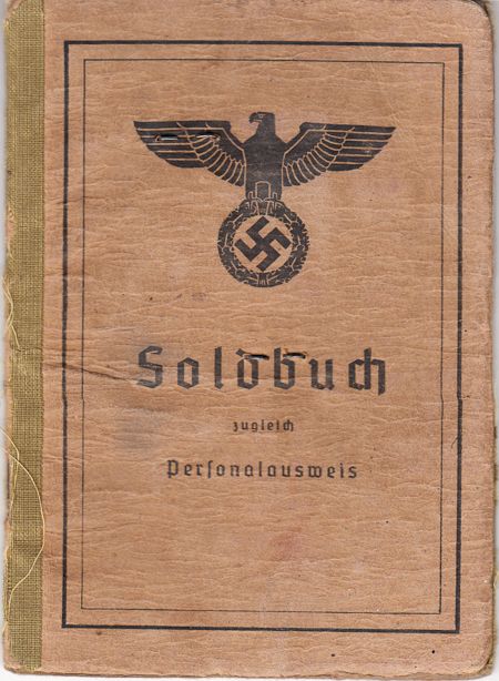 Panzer soldier's military identification book, issued to private Kurt Kruger whose photo is stapled and tied with an ink seal to the inside front cover. The book is 24pp. small, 8vo., and was issued to Kruger on Aug. 25, 1943 at Stahnsdorf. Kruger initially served with the Stamm Co. Tank Reconnaissance Reserve and Training Dept. 4, later was transferred to infantry and finally was transferred to "Pz. A. E. and A. A. 6" at Iserlohn. The book also includes weapons, clothing and equipment issued, inoculations, hospital stamps, pay grade stamps, and entries for three furloughs. Also present is a pass, 1p. 8vo., Zagan, Poland, Sep. 25, 1935, issued by the Polish Military Command indicating that prisoner of war Kurt Kruger is permitted to return to his place of residence, Berlin. A Russian document, 1p. 16mo., Sep. 25, 1945, untranslated, is also included and presumably also permits Kruger to (luckily) return home. Three pieces.