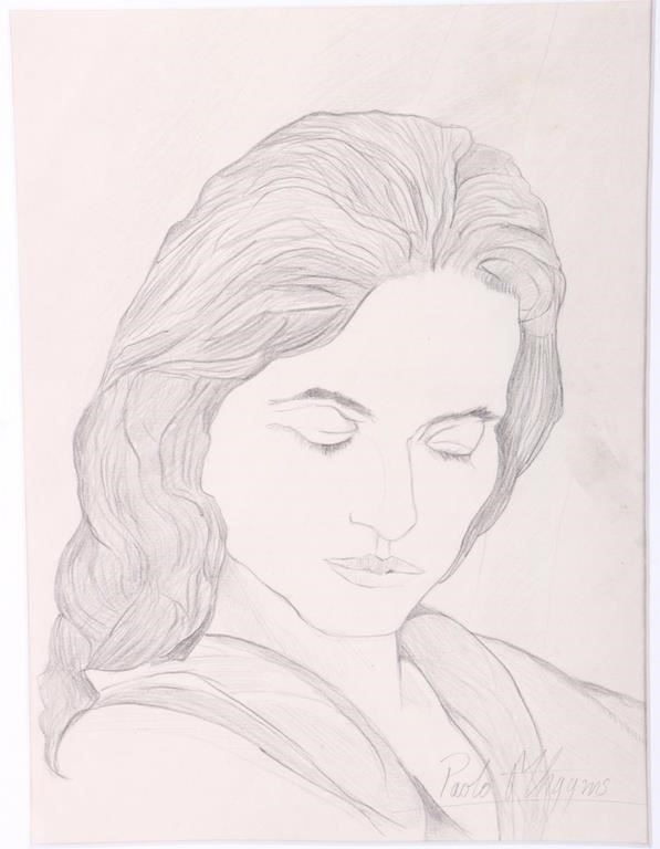 Paolo Maggis (1978-current, Italian) original woman sketching in the manner of. This is an original sketching created by an unknown artist in the same style and technique as Paolo.