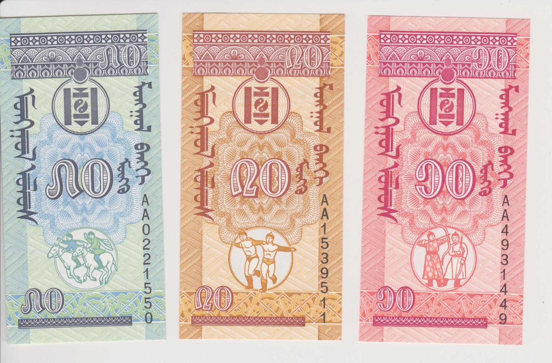 PAPER CURRENCY MONGOLIA 5 DIFFERENT