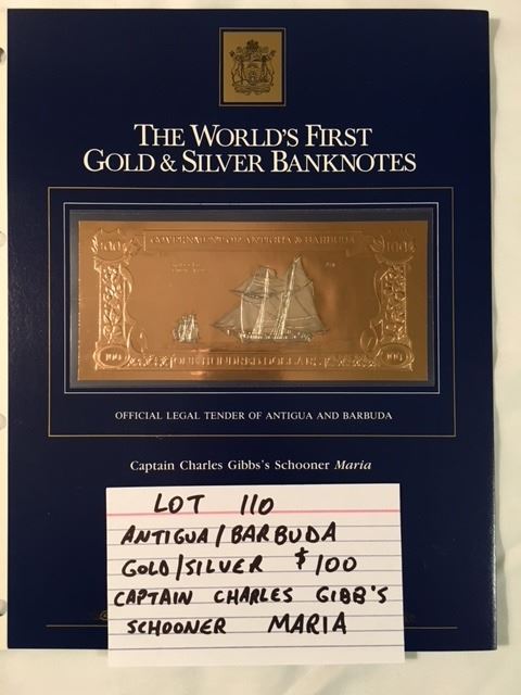 ANTIGUA/BARBUDA, 100 DOLLARS, GOLD & SILVER, CAPTAIN CHARLES GIBB'S SCHOONER MARIA.