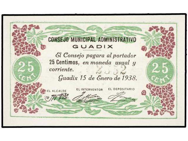 PAPER MONEY OF THE CIVIL WAR: ANDALUCÍA - 25 Céntimos. 15 Enero 1938. C.M. ADMINISTRATIVO GUADIX (Granada). Mont-741D. S/C.
