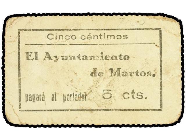 PAPER MONEY OF THE CIVIL WAR: ANDALUCÍA - 5 Céntimos. S/F. Ay. de MARTOS (Jaén). Mont-889a. MBC.