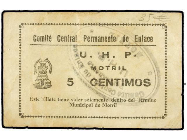 PAPER MONEY OF THE CIVIL WAR: ANDALUCÍA - 5 Céntimos. S/F. COMITÉ CENTRAL PERMANENTE DE ENLACE U.H.P. MOTRIL (Granada). MBC.