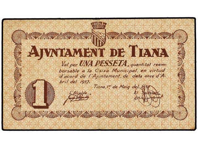 PAPER MONEY OF THE CIVIL WAR: CATALUNYA - 1 Pesseta. 1 Maig 1937. Aj. de TIANA. AT-2463; T-2854. MBC+.