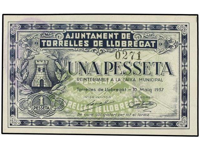 PAPER MONEY OF THE CIVIL WAR: CATALUNYA - 1 Pesseta. 10 Maig 1937. Aj. de TORRELLES DE LLOBREGAT. ESCASO. AT-2555; T-2972. S/C.