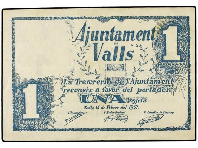 PAPER MONEY OF THE CIVIL WAR: CATALUNYA - 1 Pesseta. 16 Febrer 1937. Aj. de VALLS. (Leves manchitas). AT-2688; T-3104. MBC+.