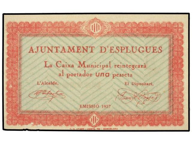 PAPER MONEY OF THE CIVIL WAR: CATALUNYA - 1 Pesseta. 1937. Aj. d´ESPLUGUES. AT-958c; T-1100c. SC.