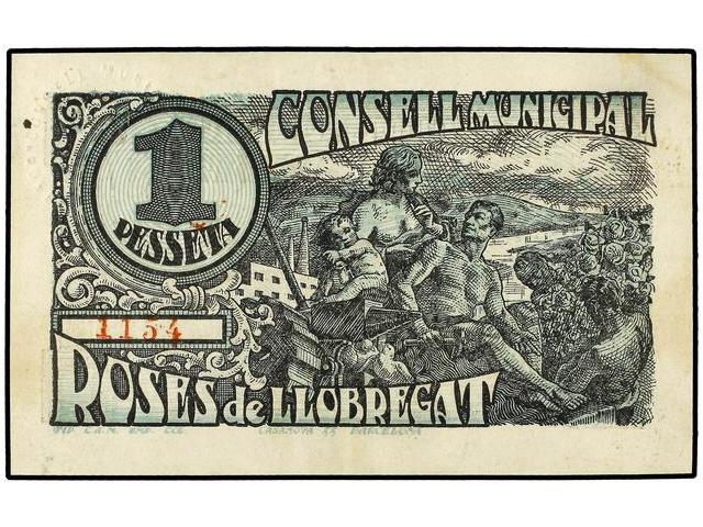 PAPER MONEY OF THE CIVIL WAR: CATALUNYA - 1 Pesseta. 20 Maig 1937. C.M. de ROSES DE LLOBREGAT. AT-2219; T-2560. EBC-.