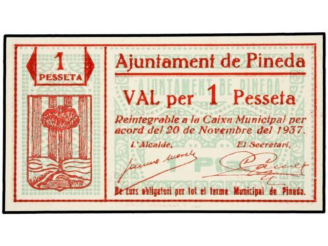 PAPER MONEY OF THE CIVIL WAR: CATALUNYA - 1 Pesseta. 20 Novembre 1937. Aj. de PINEDA. AT-1824; T-2108. SC.