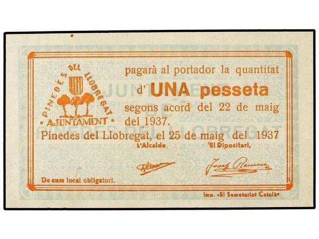 PAPER MONEY OF THE CIVIL WAR: CATALUNYA - 1 Pesseta. 25 Maig 1937. Aj. de PINEDES DEL LLOBREGAT. Serie C. AT-1829d; T-2115d. SC-.