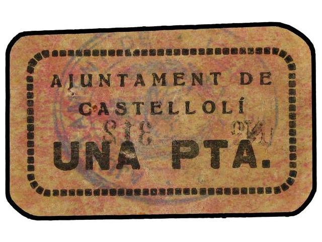 PAPER MONEY OF THE CIVIL WAR: CATALUNYA - 1 Pesseta. S/F. Aj. de CASTELLOLÍ. MUY ESCASO. AT-757; T-880. EBC-.