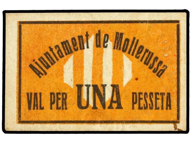 PAPER MONEY OF THE CIVIL WAR: CATALUNYA - 1 Pesseta. S/F. Aj. de MOLLERUSSA. (Algo sucio). AT-1514; T-1736. EBC.