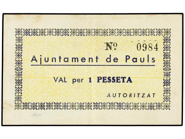 PAPER MONEY OF THE CIVIL WAR: CATALUNYA - 1 Pesseta. S/F. Aj. de PAÜLS. AT-1793; T-2077. MBC+.