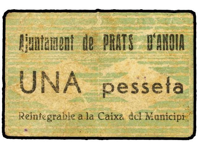 PAPER MONEY OF THE CIVIL WAR: CATALUNYA - 1 Pesseta. S/F. Aj. de PRATS D´ANOIA. AT-1996; T-2299. MBC.