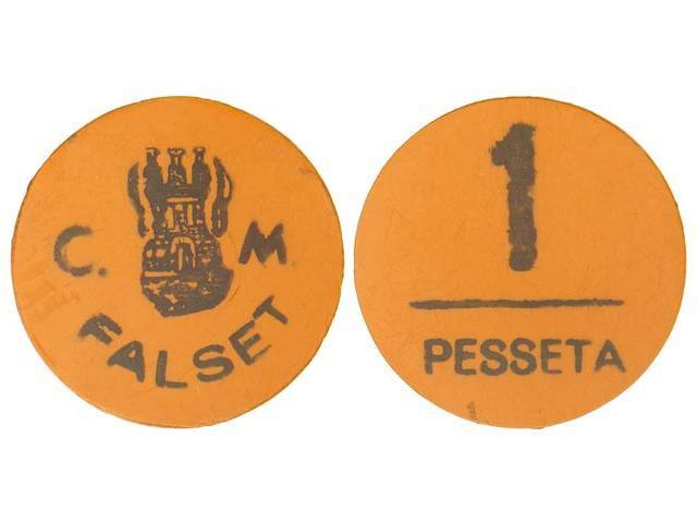 PAPER MONEY OF THE CIVIL WAR: CATALUNYA - 1 Pesseta. S/F. C.M. de FALSET. Celuloide naranja. AT-975b; L-2623; T-1122b. MBC+.