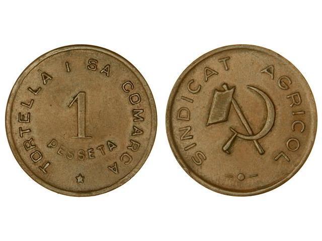 PAPER MONEY OF THE CIVIL WAR: CATALUNYA - 1 Pesseta. S/F. SINDICAT AGRÍCOL DE TORTELLÀ I SA COMARCA. AE. MUY ESCASA. T-2992. MBC+.