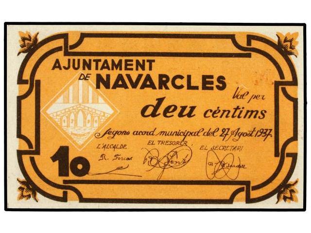 PAPER MONEY OF THE CIVIL WAR: CATALUNYA - 10 Cèntims. 27 Agost 1937. Aj. de NAVARCLES. AT-1644; T-1890. SC.