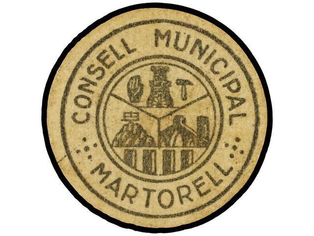 PAPER MONEY OF THE CIVIL WAR: CATALUNYA - 10 Cèntims. S/F. C.M. de MARTORELL. Cartón redondo. AT-1448; T-1654. MBC+.