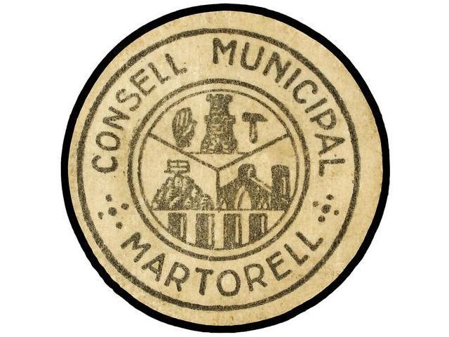 PAPER MONEY OF THE CIVIL WAR: CATALUNYA - 10 Cèntims. S/F. C.M. de MARTORELL. Cartulina. RARO. AT-1448; T-1654. EBC-.