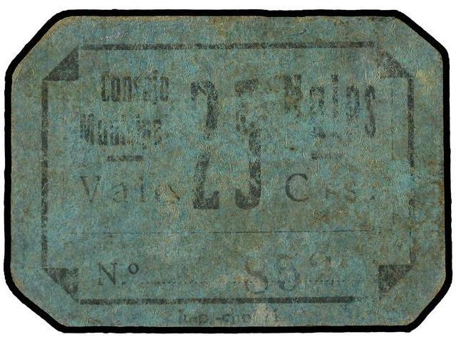 PAPER MONEY OF THE CIVIL WAR: CATALUNYA - 25 Céntimos. S/F. C.M. de NULES (Castellón). Cartón. TV-1026. MBC.